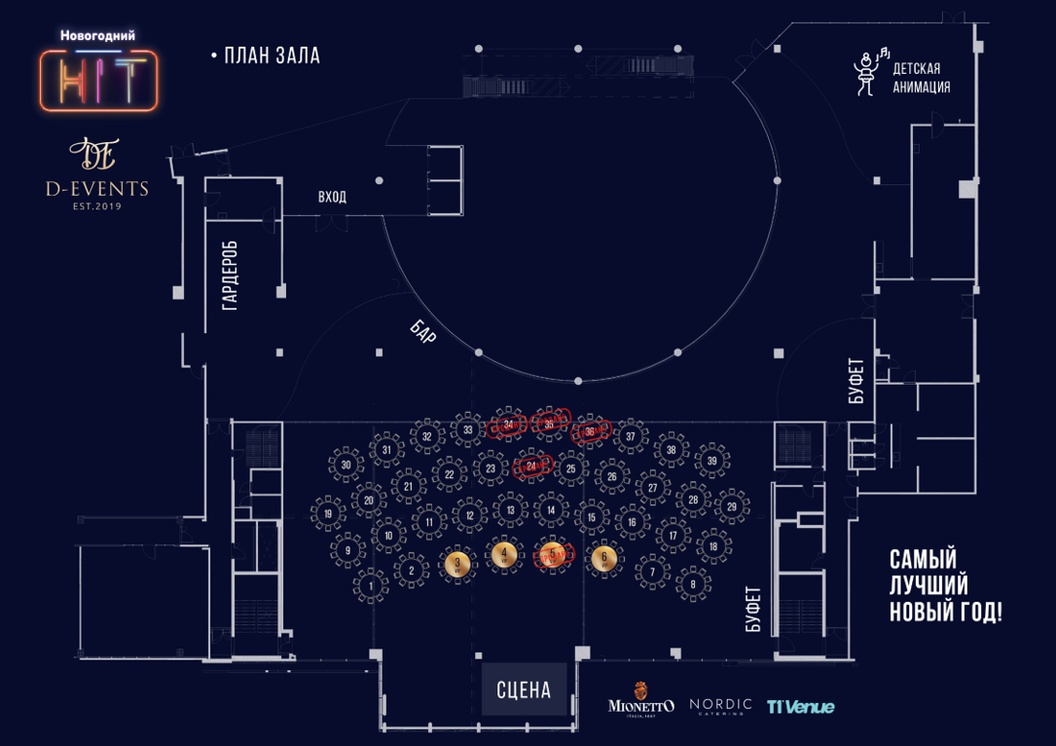 GOLDEN10 — see on kuldne standard uusaasta peol. Ehted ja kujundus kuldses stiilis, külmad suupisted on serveeritud lauas, šampanja Moutard Brut Grande Cuvée ning lisaks valikus 2 pdl lauas kas Beluga Noble viin / Nikka Days viski / Angostura Caribbean 7 YO rumm. Laud on mõeldud 10 inimesele (lauad nr 3, 4, 5, 6).